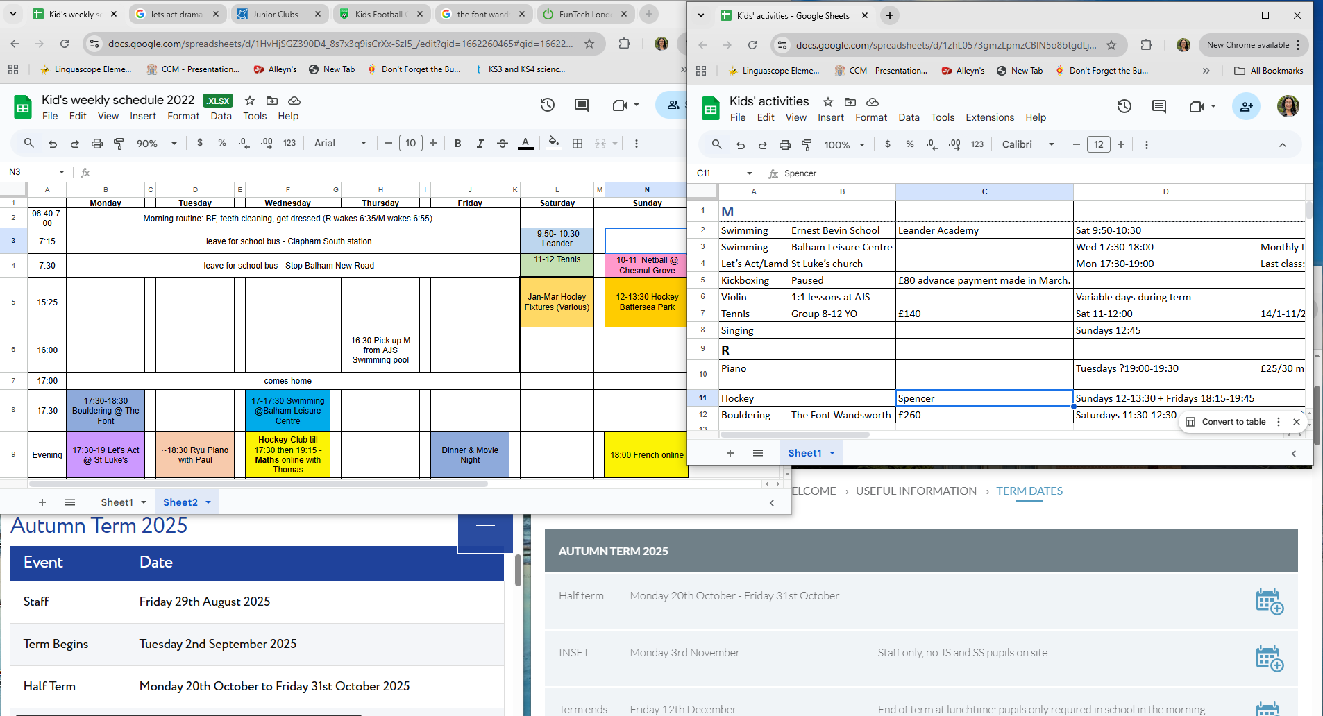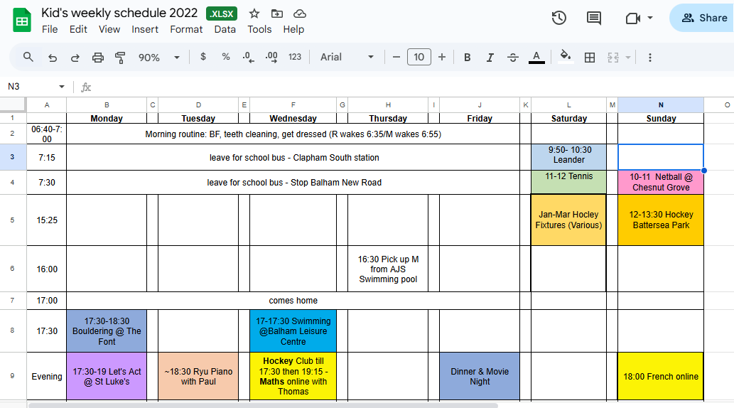 We use 3 group chats to barely stay in the loop with other parents, 2 manually-inputed spreadsheets for afterschool planning, 8 tabs open for research 5 Facebook groups to find a community, Endlessly asking friends for parenting advice 6 weekly-printed schedules for both kids stuck on our fridge.