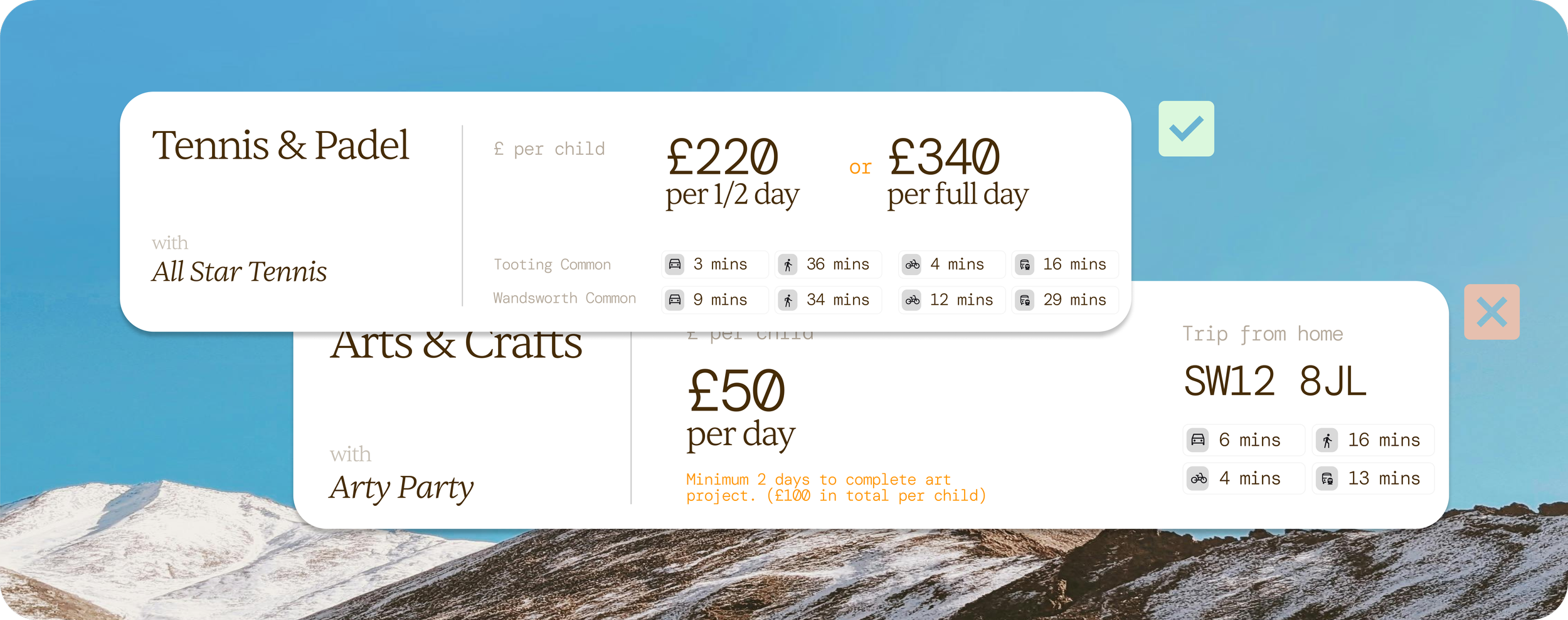 You’ll receive a personalised shortlist of activities that fit. These include travel times from your home, a map, available dates, and tailored reasons why we picked them for you and your children. We also try to find unique, local places.